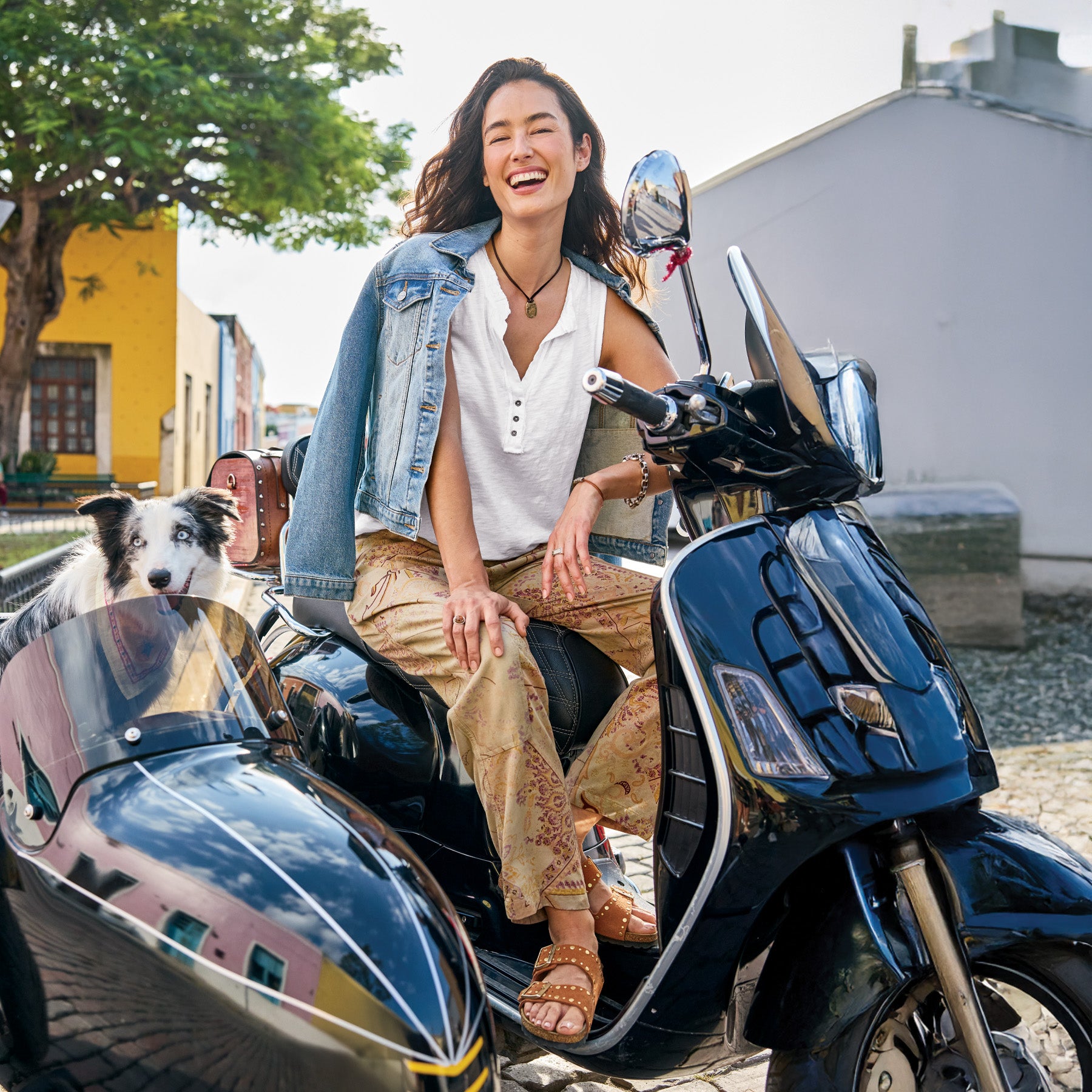 A charming mixed-print bandana pattern graces our flowing. straight-leg Ashanti Pants. So comfortable and flattering with antiqued silver snap closure and drawstring tie at elastic waist with zip fly and slant front pockets. Tencel®. Machine wash. Imported. Exclusive. Sizes 2–16. 27 inseam.