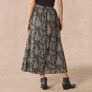 So flowing and breathable. our printed gauze silhouette skirt with an asymmetrical front ruffle detail and novelty slit at the princess seam is as comfortable as it is beautiful. Side zipper. printed self-lining. Cotton. Machine wash. Imported. Exclusive. Sizes XS (0?C2). S (4?C6). M (8?C10). L (12?C14). XL (16?C18). XXL (20?C22). Approx. 37-1/2l.