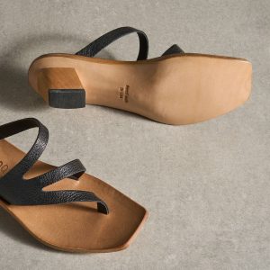 Asymmetric straps of textured leather and a square toe are the highlights of these handmade sandals. Leather lining and sole. wooden heel. Leather. Made in USA. Exclusive. Whole sizes 36-42. 36 (US 6). 37 (US 7). 38 (US 8). 39 (US 9). 40 (US 10). 41 (US 11). 42 (US 12).