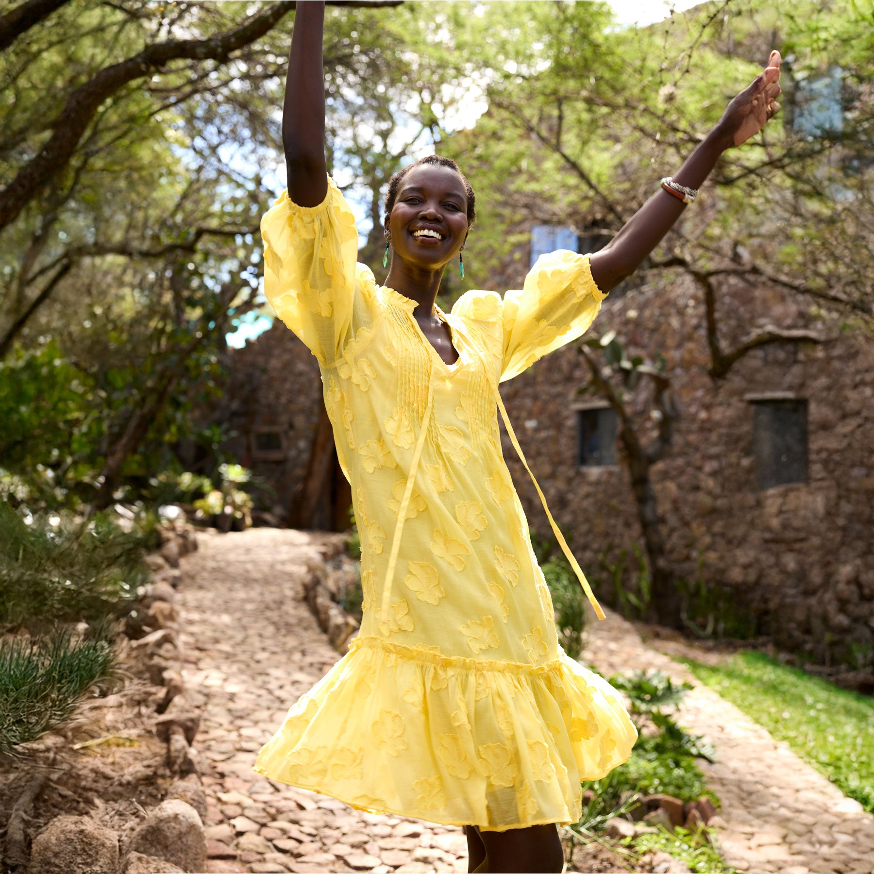 With feather-light fabric and modest coverage. our Fanciful Florals Dress is the perfect seasonal transition piece. Clipped jacquard fabric with pintuck details. notch neck. elastic sleeves and ruffled hem. Separate slip. Nylon/viscose/cotton. Machine wash. Imported. Exclusive. Sizes XXS (00). XS (0?C2). S (4?C6). M (8?C10). L (12?C14). XL (16?C18). Approx. 35.5l.