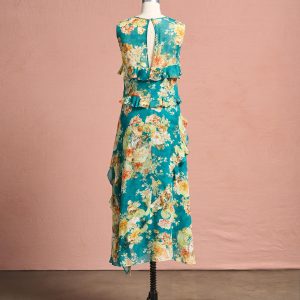 A gorgeous floral print enchants on our romantic dress. with angled. fluttery ruffles. asymmetrical hem. deep side slit. smocked neckline and keyhole button back. Fully lined. Viscose. Machine wash. Imported. Exclusive. Sizes XS (0-2). S (4-6). M (8-10). L (12-14). XL (16-18). XXL (20-22). Approx. 43.5l.