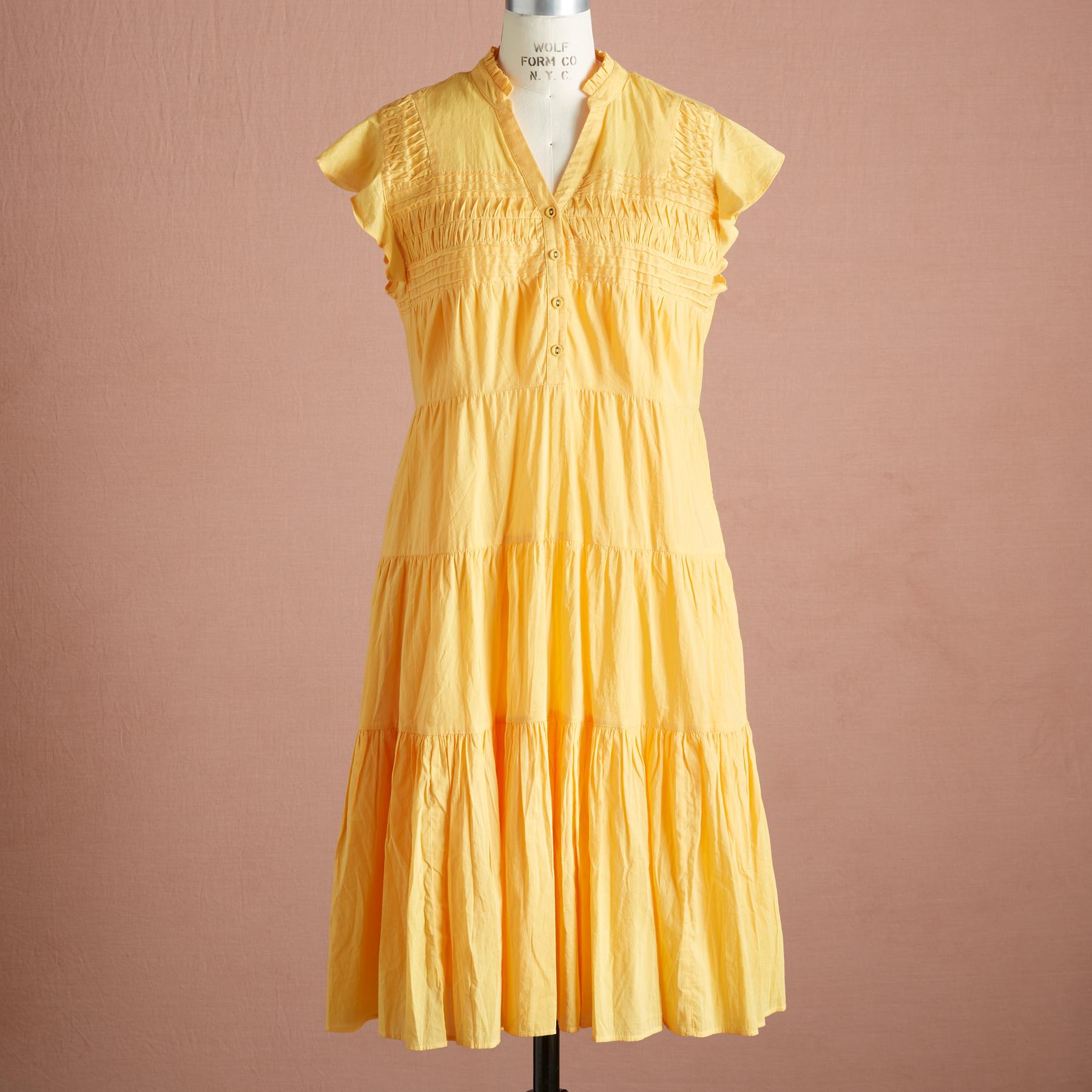 Flowing and breathtaking. our dramatic popover midi dress features a henley placket. pintucks. tiers. ruffles and eyelet-covered buttons. Cotton/lyocell. Machine wash. Imported. Exclusive. Sizes XXS (00). XS (0-2). S (4-6). M (8-10). L (12-14). XL (16-18). Approx. 38.5l.