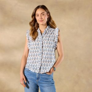 A Sundance fan fave. now in a ultra-feminine floral print! Ruffle details at sleeve and bodice; hidden-button placket. Cotton. Machine wash. Imported. Sizes XS (0–2). S (4–6). M (8–10). L (12–14). XL (16–18). XXL (20–22). Approx. 24.75l.