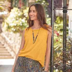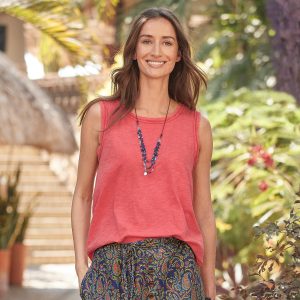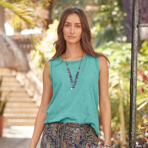 Our cotton slub muscle tank has the cleanest silhouette. with exposed stitching and raw-edge details. Slight hi-lo hem. Machine wash. Imported. Exclusive. Sizes XS (0??). S (4??). M (8??0). L (12??4). XL (16??8). XXL (20??2). Approx. 25l.