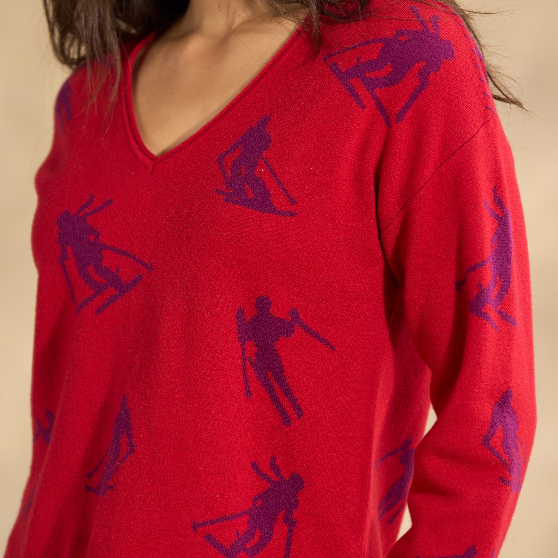 Our whimsical jacquard sweater celebrates the ski life in a brushed mix of yarns. V-neck with jersey roll detail. rib trim at cuffs and hem. Contrast color. hand-embroidered detail at shoulder seams. Easy fit. Mercerized wool/nylon. Hand wash. Imported. Exclusive. Sizes XXS (00). XS (0–2). S (4–6). M (8–10). L (12–14). XL (16–18). Approx. 22l.
