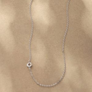 Elegance with a personal touch. Our necklace is handcrafted with upper-case serif letters A to Z. Sterling silver chain and lobster clasp; rhodium-plated sterling silver letters. Made in USA. 17l.