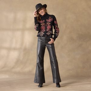 Step into style with our high-rise leather pants. so cool and relaxed. sure to add fun and excitement to your look. Five pockets. zipper closure. Leather. Professional cleaning. Imported. Sundance exclusive. Sizes 24-32. 34 inseam.